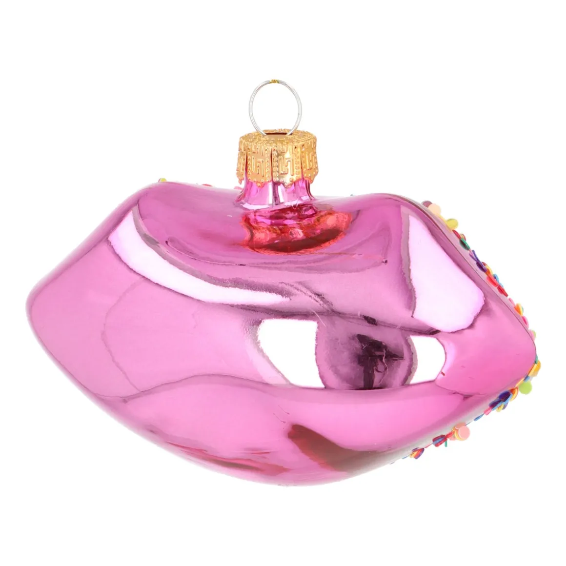 Shoppe schnell unseren rosa gläsernen Lippen-Weihnachtsschmuck und gestalte dieses Jahr einen Weihnachtsbaum, den man küssen möchte!