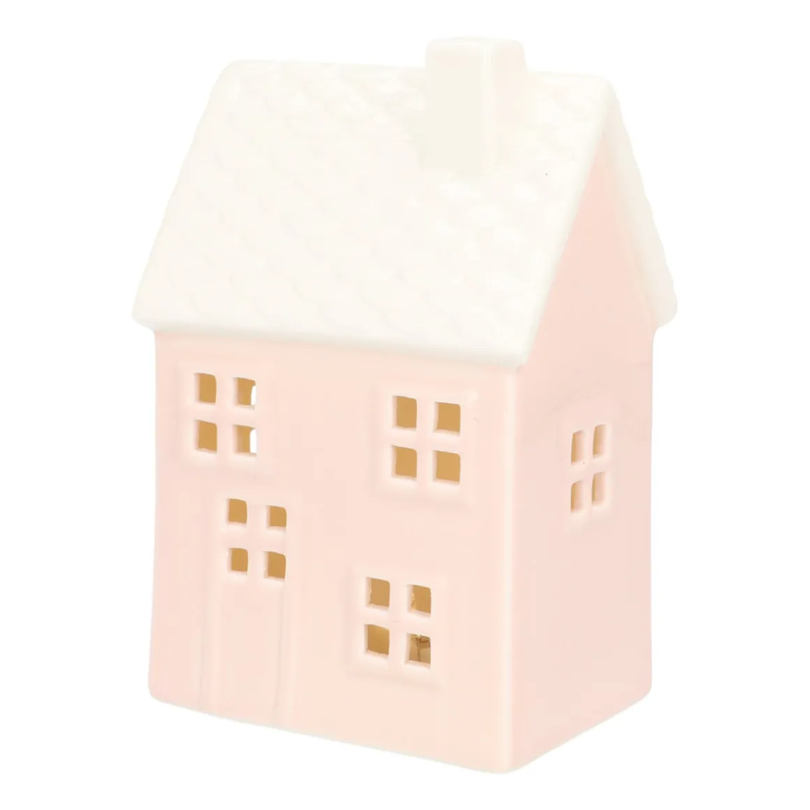 Dieses süße rosa Häuschen aus Porzellan bringt sofort Gemütlichkeit in dein Zuhause! Mit seinen glänzenden rosa Wänden und dem verspielten Design ist es perfekt für die Weihnachtszeit. Die beleuchteten Fenster, der kleine Schornstein und der sanfte Rosaton machen dieses Häuschen nicht nur festlich, sondern auch richtig niedlich. Die eingebauten LED-Lichter (inkl. Batterien) sorgen sofort für eine warme Atmosphäre. Hast du schon einen Platz für dieses 15 cm hohe Häuschen im Kopf?
