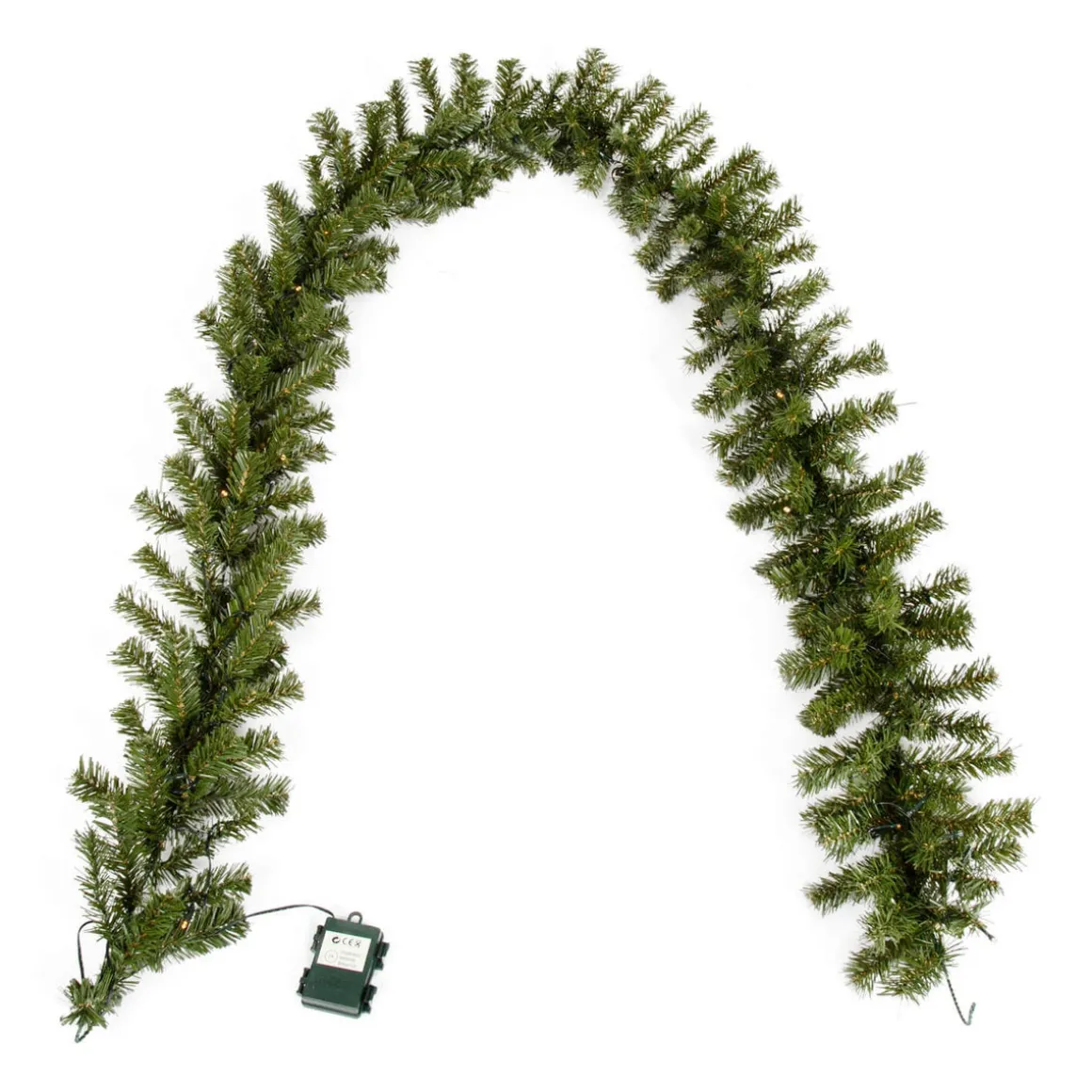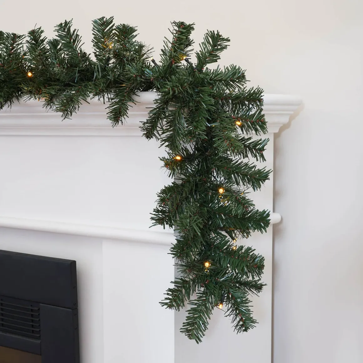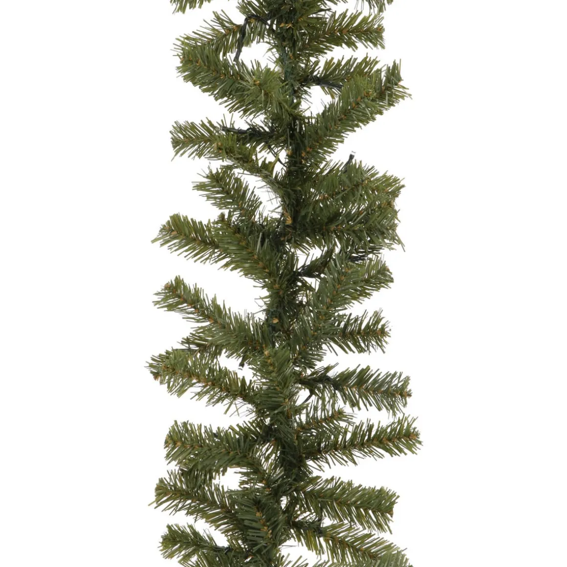 Naturgetreue Tannengirlande in einem schönen Grün mit LED Beleuchtung. Ihre Nadeln sind der Kiefer nachempfunden und sehen besonders echt aus. Die Girlande ist 270 cm lang, 20 cm breit und besitzt 180 Zweige. Das LED Licht leuchtet warmweiß.
