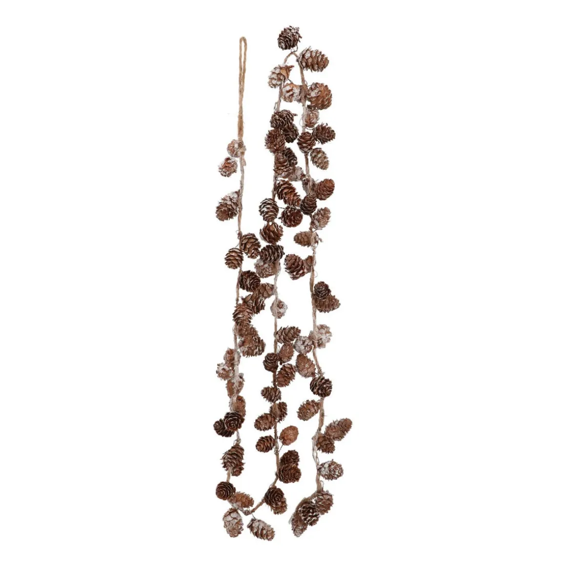 Elegante Girlande aus Tannenzapfen, versehen mit künstlichem Eis – daher weiß-grau – für einen winterlichen Frost-Look. Die Girlande ist 150 cm lang und passt zu verschiedenen Weihnachtsdekorationen.