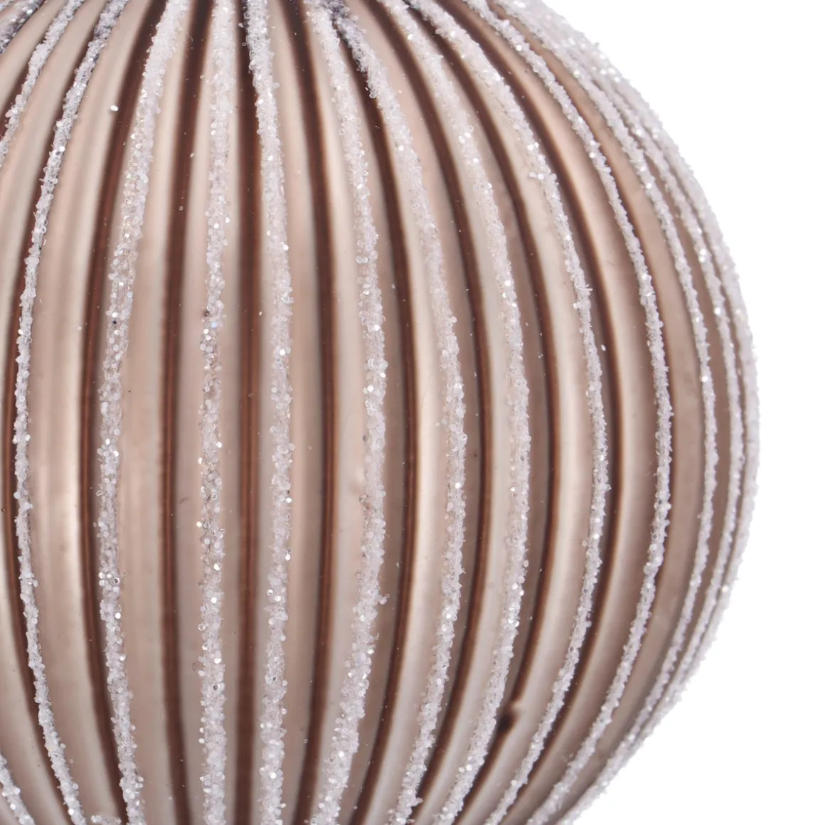 JA! Weihnachten darf auch mal auf besondere Weise verspielt sein. Diese taupefarbene Weihnachtskugel mit verspieltem Lampion-Relief hat einem Durchmesser von 8 cm ist besonders festlich. Die taupefarbene Weihnachtskugel und die, von Hand aufgetragene Glitzerlinien, bringen eine raffinierte und festliche Atmosphäre in dein Zuhause. Das silberne Fädchen macht es leicht, die Kugel an deinem Baum zu platzieren.