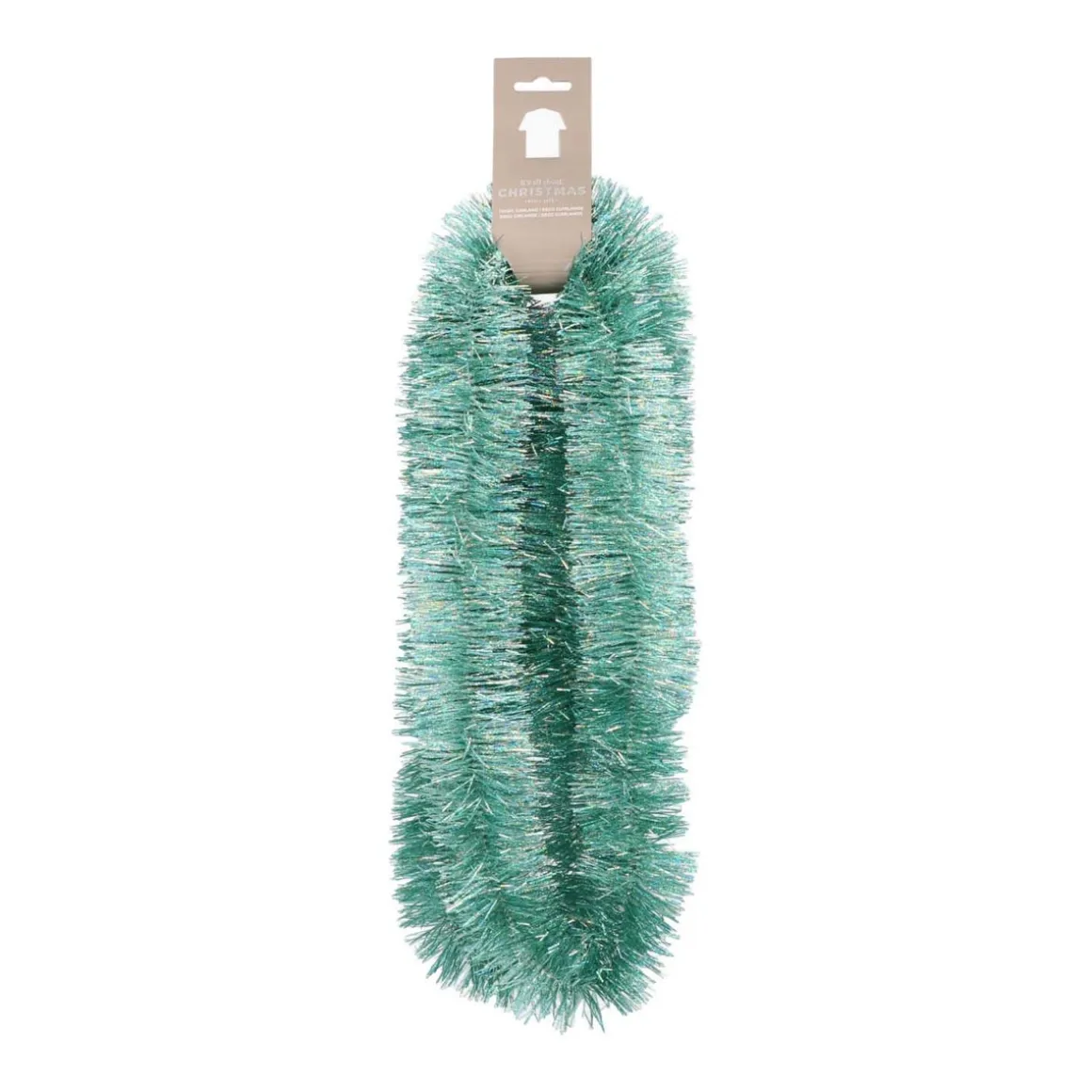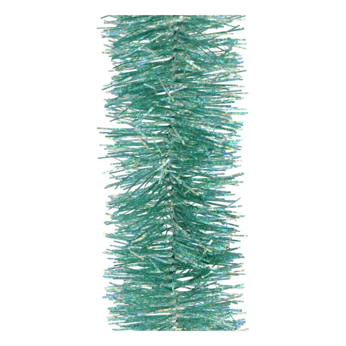 Elegante Weihnachtsgirlande in lasiertem Eisblau. Die Girlande ist 270 cm lang und hat eine Breite von 7,5 cm. Sehr dekorativ im Weihnachtsbaum oder aber an anderen Stellen. Weihnachtsgirlanden sind ein wahrer Klassiker zum Fest und wieder stark im Kommen.