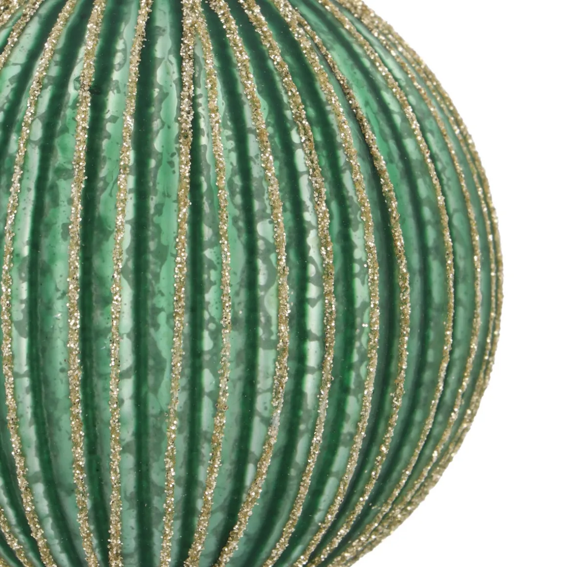 Eleganz trifft auf Tradition. Einerseits die klassische Weihnachtsfarbe Dunkelgrün sowie das Krakelee-Muster auf der Oberfläche, andererseits die goldenen Glitzerlinien, die für einen edlen Touch sorgen. Das Ergebnis ist eine fantastische Kugel, die zum Eyecatcher an Bäumen mit traditioneller Note wird. Das bedeutet jedoch nicht, dass diese Christbaumkugel nicht auch in modernen Dekorationen eingesetzt werden kann. Im Gegenteil, in angesagten Kombinationen, in denen sich Hellgold wiederfindet, fügt sie sich ebenfalls ein.
