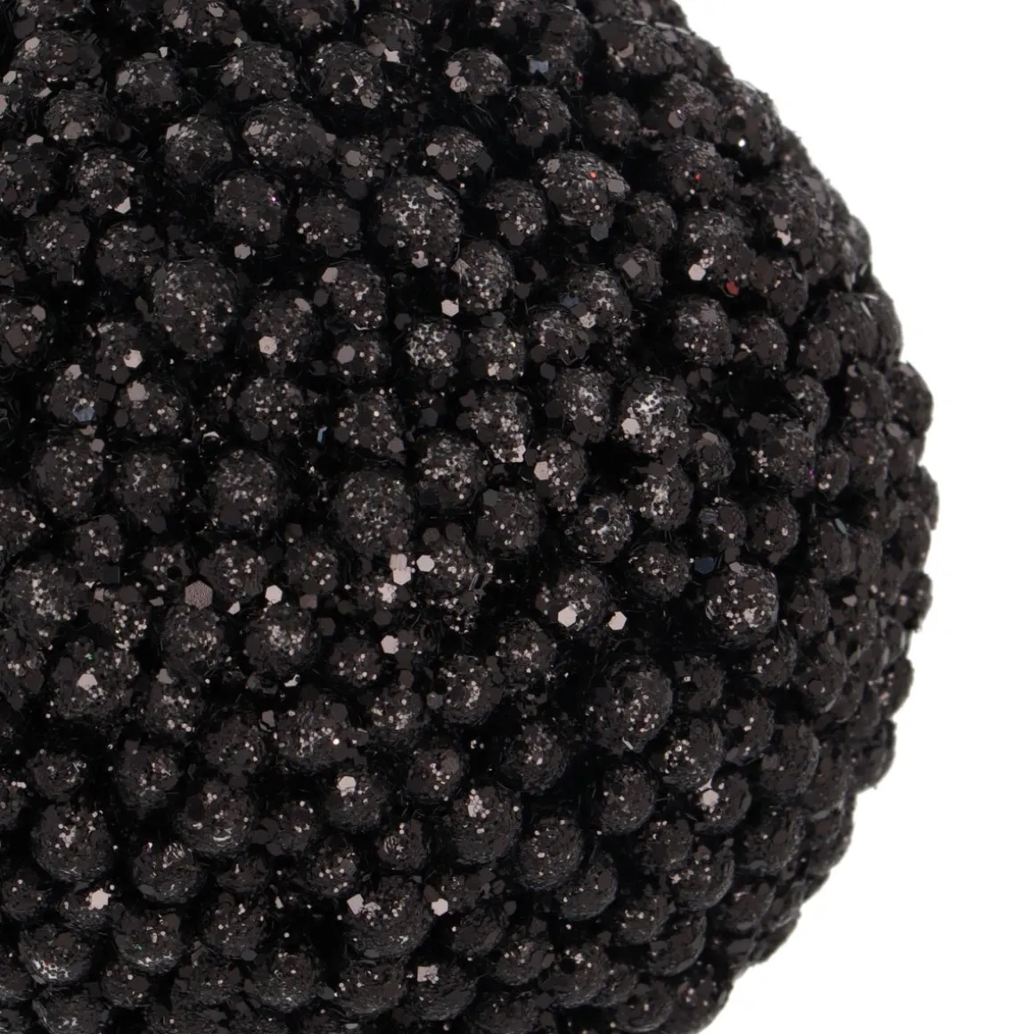 Dekorative Weihnachtskugel mit Dekoperlen. Diese Christbaumkugel ist Schwarz, 8 cm groß und aus Kunststoff hergestellt. Mit ihrem Glanz und besonderem Design setzt sie einen starken Akzent am Tannenbaum und in der Weihnachtsdeko.