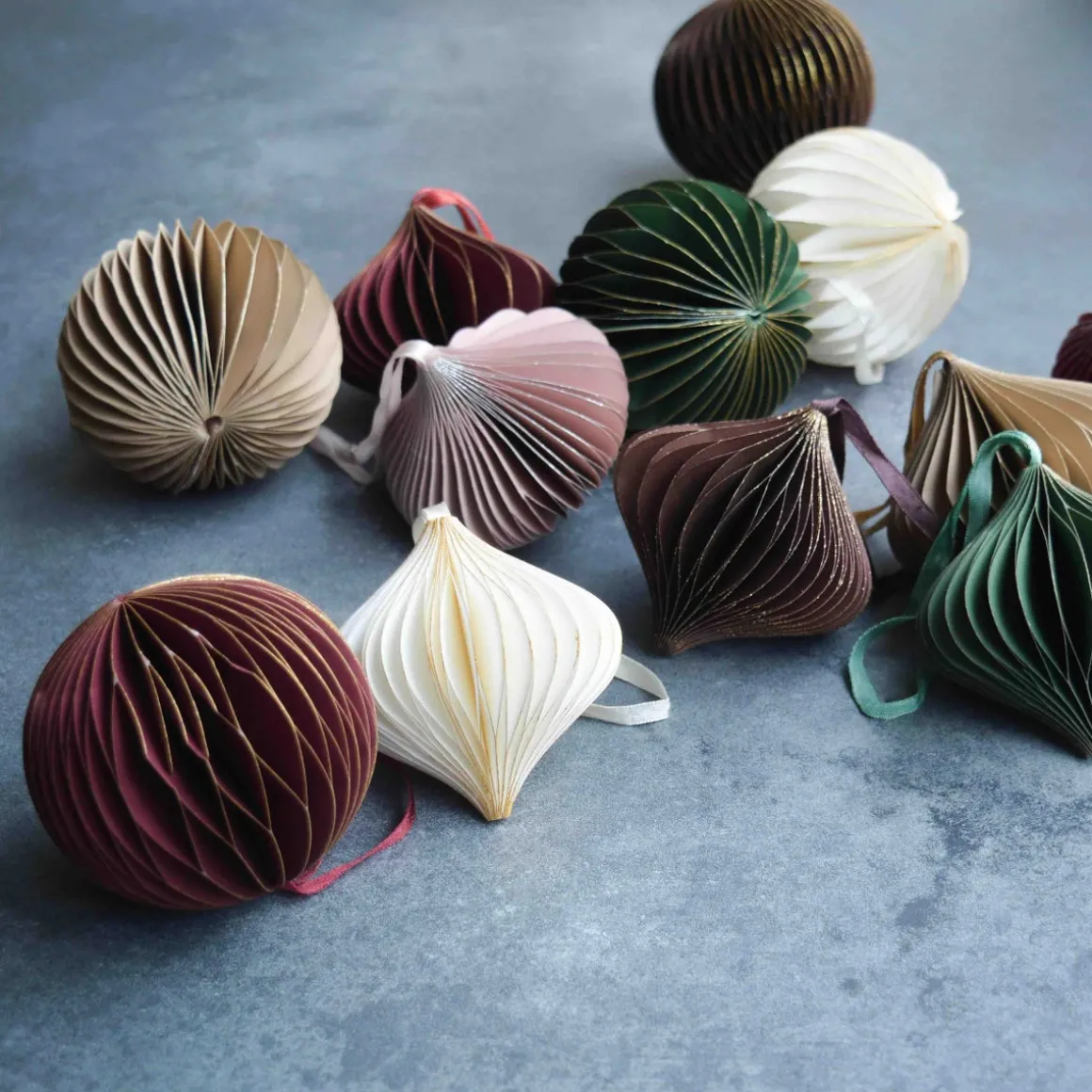 In unserem Online Shop findet ihr Christbaumschmuck aus Papier in vielen Farben und Formen. Schaut euch um und kreiert fantastische Papierdekorationen.