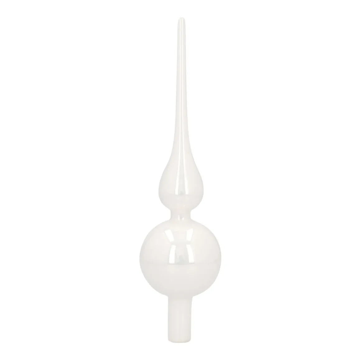 Ein Weihnachtsbaum wird erst mit einer Spitze komplett. Diese glanzvolle weiße Glaspitze macht den Dezember zu einem eleganten Fest! Diese robuste weiße Glaspitze aus Glas, 27 cm hoch, hat ein zeitloses Design und eine charakteristische klassische Form. Die glänzende weiße Oberfläche passt sowohl zu romantischen als auch traditionellen Weihnachtsdekorationen. Befestige diese Spitze als krönenden Abschluss an der Spitze deines Weihnachtsbaums.