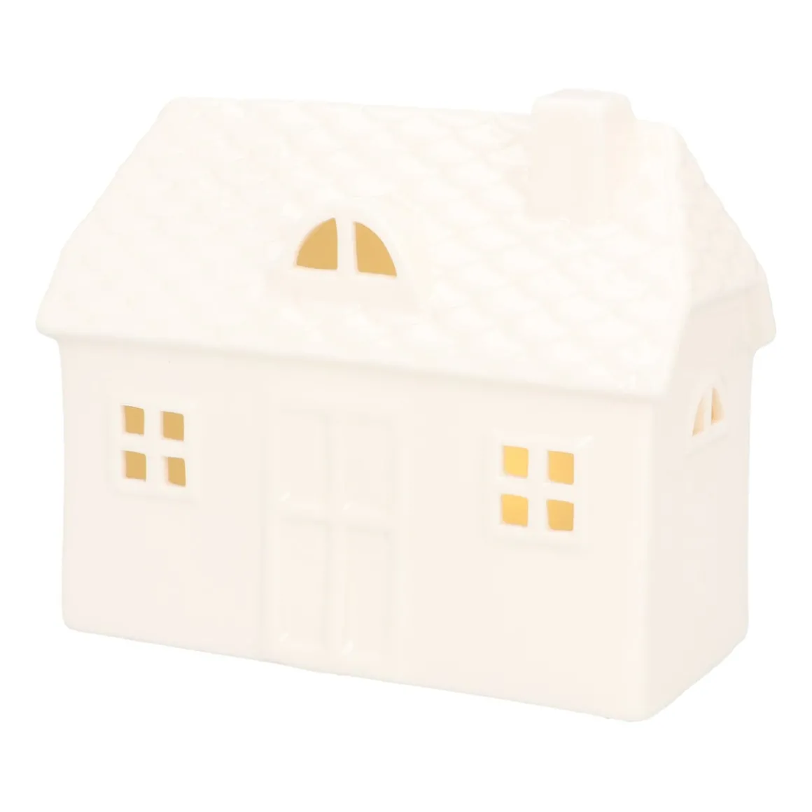 Suchst du ein stilvolles Element, um deine Weihnachtsdeko abzurunden? Dann brauchst du dieses charmante weiße Häuschen! Dieses 13 cm hohe Wohnhaus aus glänzendem Porzellan fügt sich mit seinem eleganten, minimalistischen Design mühelos in jedes Interieur ein. Stell es auf dein Fensterbrett, Sideboard oder deinen Esstisch und lass das warme LED-Licht durch die Fenster strahlen. Batterien sind inklusive, sodass du sofort die gemütliche Atmosphäre genießen kannst!