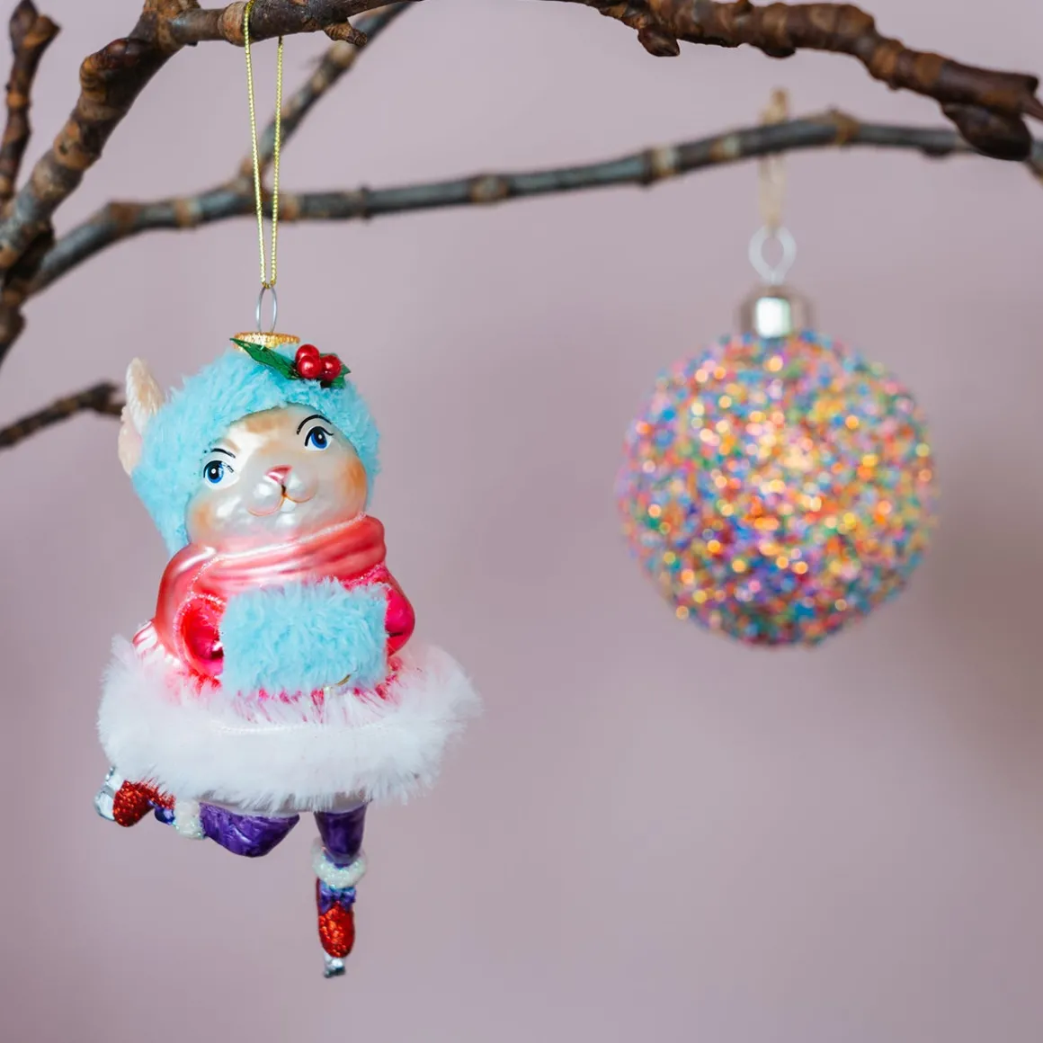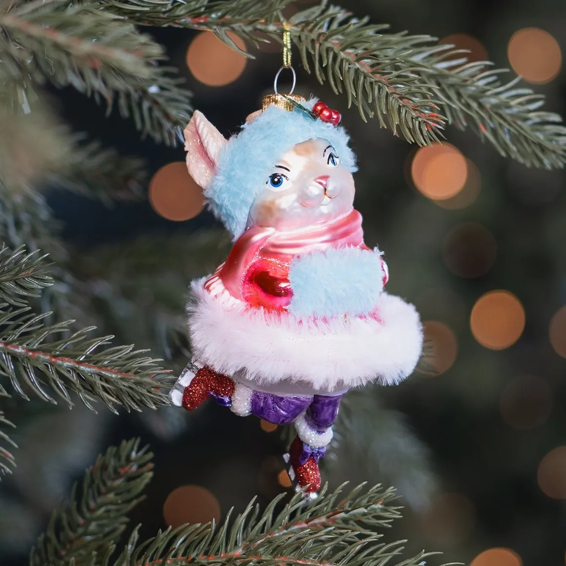 Der farbenfrohe Weihnachtsanhänger ist 15 cm groß und fällt im Baum richtig auf. Das mundgeblasene Glas-Kaninchen ist von Hand bemalt. Ihr winterliches Outfit ist komplett mit einem grünen Metallic-Anzug, roten Glitzer-Schlittschuhen und einem Röckchen sowie einer Mütze mit Plüschborten. Details gibt es hier genug! Dieses Glas-Weihnachtskaninchen ist durch seine Größe auch ein tolles Geschenk.