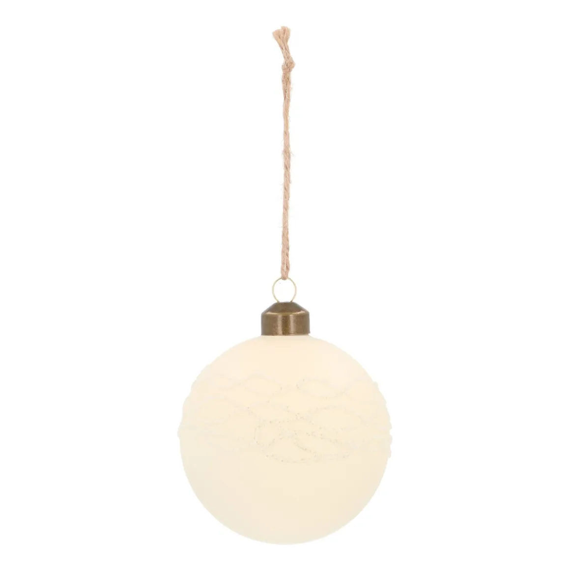 Du denkst, dass die Farbe Weiss nicht mer IN ist? Diese wollweiße Weihnachtskugel von 8 cm mit eleganten geschwungenen Glitzerlinien sieht in deinem Weihnachtsbaum fantastisch aus. Jedes Detail wurde von Hand aufgetragen, was diese Weihnachtskugel besonders macht. Das bronzene Krönchen und das Juteband verleihen eine rustikale und stilvolle Note. Die Kombination aus wollweißem Glas und den glitzernden Linien sorgt für eine raffinierte und frische Ausstrahlung. Diese Weihnachtskugel passt gut zu hellen Tönen, aber auch zu tiefen Farben wie Dunkelblau, um ein harmonisches Gesamtbild zu schaffen.