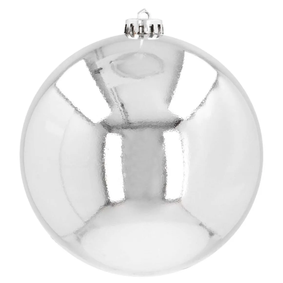 Große Christbaumkugel in Silber mit einem Durchmesser von 15 cm. Aus Kunststoff hergestellt, mit glänzender Oberfläche, für drinnen und draußen. Die XL Weihnachtskugel sorgt am Tannenbaum oder bei der Weihnachtsdeko für einen tollen Akzent.