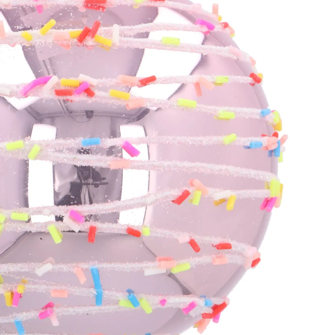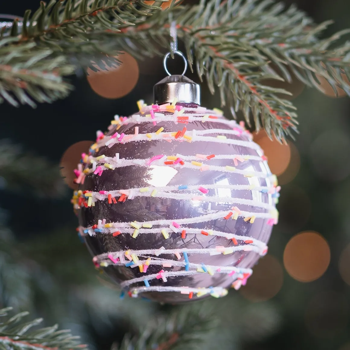 Möchtest du deinen Weihnachtsbaum in diesem Jahr mit einem verspielten und bunten Element aufpeppen? Mit dieser luxuriösen rosafarbene Metall Weihnachtskugel liegst du genau richtig. Im Handumdrehen schaffst du ein festliches und fröhliches Weihnachtsthema! Diese luxuriöse rosa Glaskugel hat verspielte weiße Linien und bunte Kristalle, wie ein Softeis mit bunten Streuseln. Die Metallic-Oberfläche reflektiert das Licht der Weihnachtslichter wunderschön und lässt deinen Weihnachtsbaum besonders strahlen. Das silberne Bändchen macht es einfach, die Kugel aufzuhängen. Perfekt für einen Weihnachtsbaum mit einem rosa Thema oder einen Baum voller süßer Leckereien!